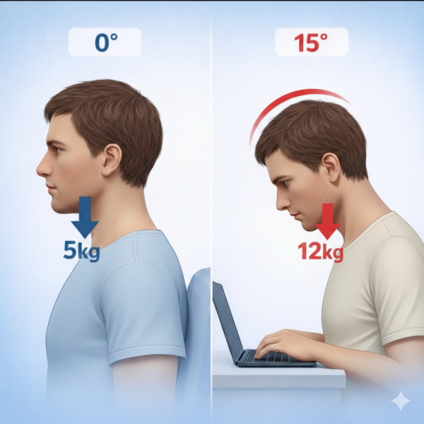 しかし、頭が前に15度傾くだけで、 首にかかる負担は約12kgまで増えると言われています。