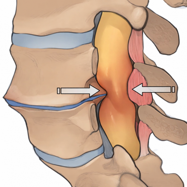 脊柱管狭窄症とは、背骨の中の神経の通り道が、「骨」や「靭帯」の変形や肥厚、椎間板が飛び出すことで神経を圧迫して痛みやしびれなどを引き起こします。
