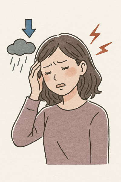 ・血管の拡張:気圧が下がると外圧が減り、脳内の血管が拡張。これが三叉神経を刺激し、ズキズキとした片頭痛を誘発します。