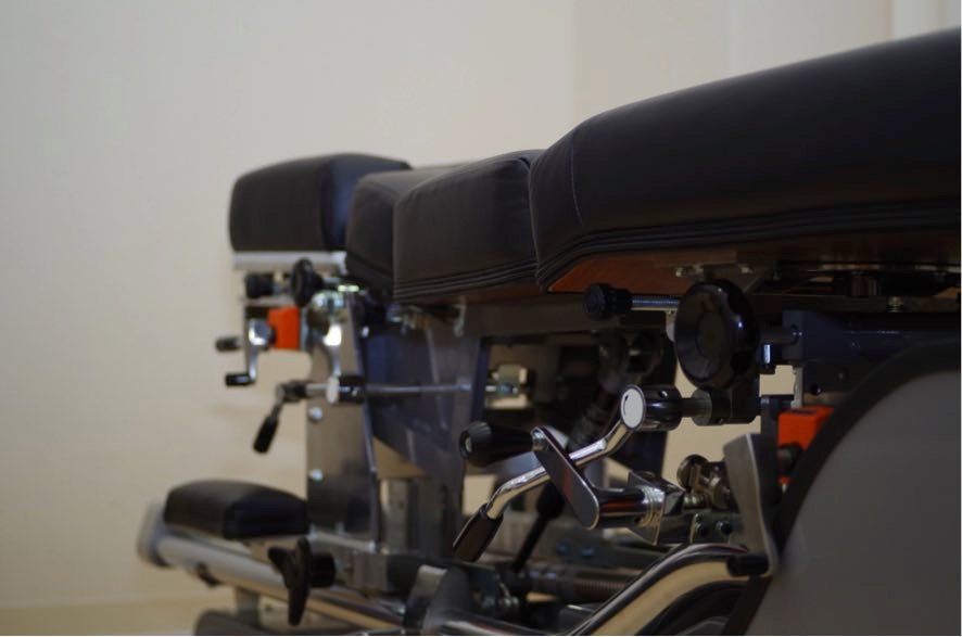 座ったままリラックス姿勢が可能となるカイロプラクティックチェアは座ったままでも施術が可能です。